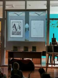 Šiandien, kovo 6 d., Zapyškio paruošiamosios grupės auklėtiniai ir pirmokėliai sugužėjo į biblioteką susitikti su Nacionalinio M. K. Čiurlionio muziejaus edukatorėmis Juste ir Neringa, kurios atvežė į Zapyškį dvi ypatingas knygeles – „Čiurlionio abėcėlę“ ir ,,Čiurlionio abėcėlės darbelius“ su labai įdomiomis veiklomis, kurios padėjo kitaip pažvelgti į M. K. Čiurlionio meno pasaulį, atrasti jo grožį, atskleisti jame slypinčias paslaptis.