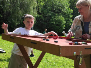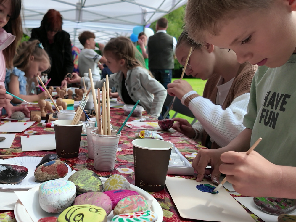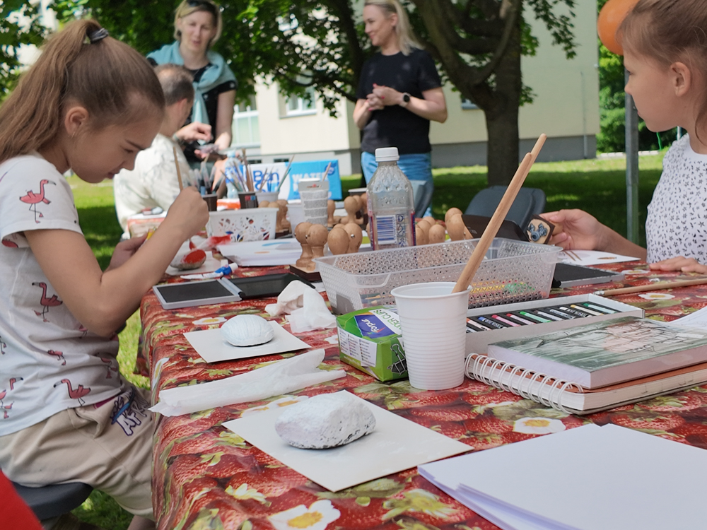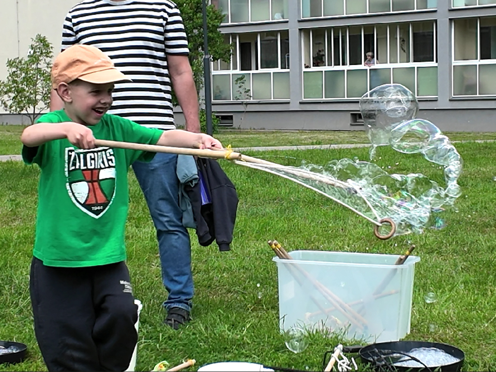 Visos dienos veiklos – kūrybinės dirbtuvės, žaidimai, draugystės apyrankės ir laimės akmenėliai, didžiuliai muilo burbulai, mediniai lauko žaidimai – sulaukė gausaus būrio dalyvių.