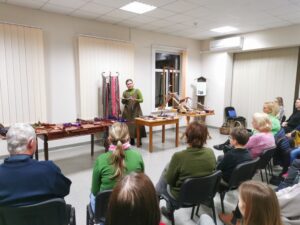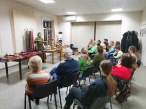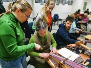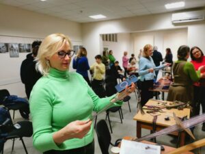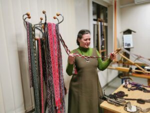 Tautodailininkė, etnografė Jūratė Bytautė dalinosi savo žiniomis apie skirtingų Lietuvos regionų juostų ypatumus, jų raštų kalbą ir spalvų harmoniją. Edukacijos dalyviai turėjo galimybę pajausti, kaip kiekvienas raštas perteikia lietuviškos tapatybės bei istorijos fragmentus. Vakaro atmosferą užpildė ne tik juokas ir nuoširdūs pokalbiai, bet ir susikaupimo akimirkos, kai kiekvienas pirštų judesys pynėsi į autentišką lietuvišką raštą. Šypsenos, susižavėjimas ir kūrybinė aistra tapo pagrindinėmis vakaro emocijomis, o jaukioje aplinkoje mezgėsi nauji bendrystės ryšiai.