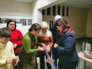 Vasario 7 d. Ringaudų bendruomenės centras buvo sklidinas jaukumo, kūrybinio įkvėpimo ir žmonių entuziazmo pasinerti į tautiškumo šaknis. Edukacijos metu dalyviai ne tik mokėsi tradicinio lietuviškų juostų audimo meno, bet ir gilinosi į jų simboliką, spalvų reikšmes bei istorines audimo