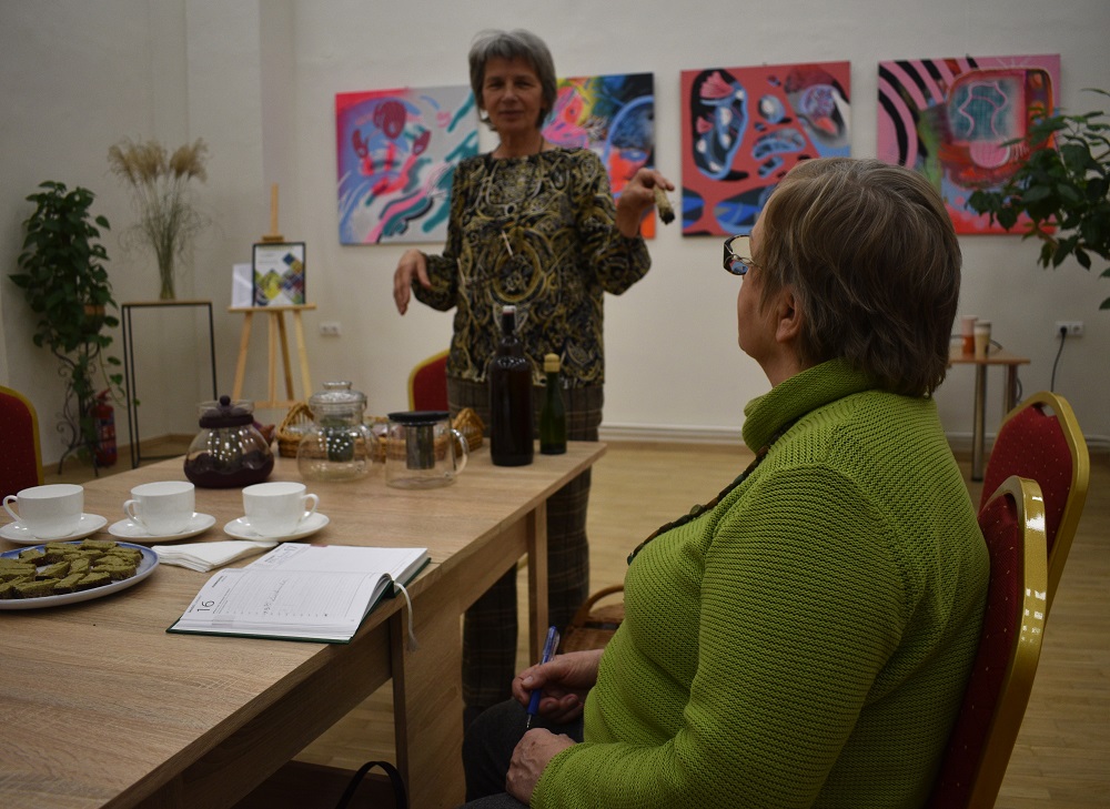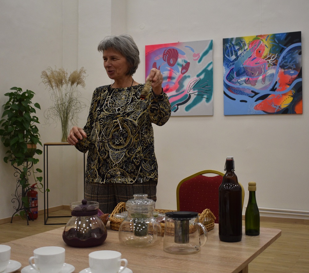 Susitikime su žolininke Rūta Borutiene sužinojome, kam naudingi augalai, kokiomis vaistinėmis savybėmis pasižymi visiems puikiai pažįstami žolynai. Labiausiai edukacijos dalyvius skonio ir spalvos savybėmis nustebino svogūnų lukštų ir morkų lapų arbata!