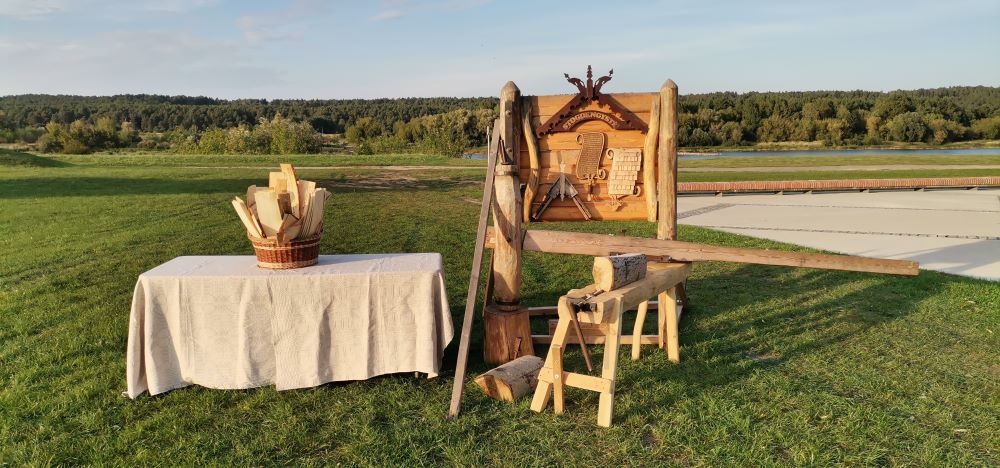 - Klausytojai ir dalyviai, susirinkę prie senojo gluosnio, savo akimis pamatė, kaip buvo gaminamos skiedros stogams dengti 19 a. staklėmis, kurias atvežė ir amatą pristatė sertifikuotas meistras iš Lekėčių (Šakių r.), Gintas Čekauskas. Visi norintys galėjo išbandyti, kaip veikia staklės.