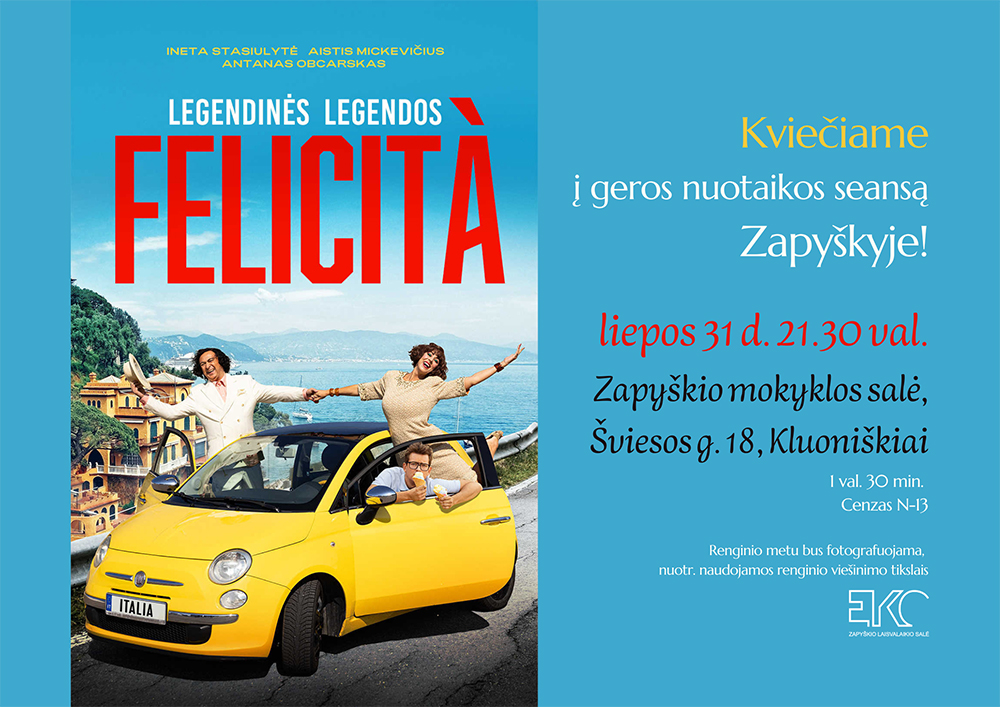 Kviečiame į geros nuotaikos seansą Zapyškyje kartu su šeima ar draugais liepos 31 d. 21.30 val.!