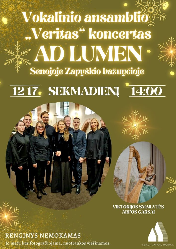 Mišraus choro „Veritas“ sakralinių dainų koncertas „Ad Lumen“ Senojoje Zapyškio bažnyčioje.