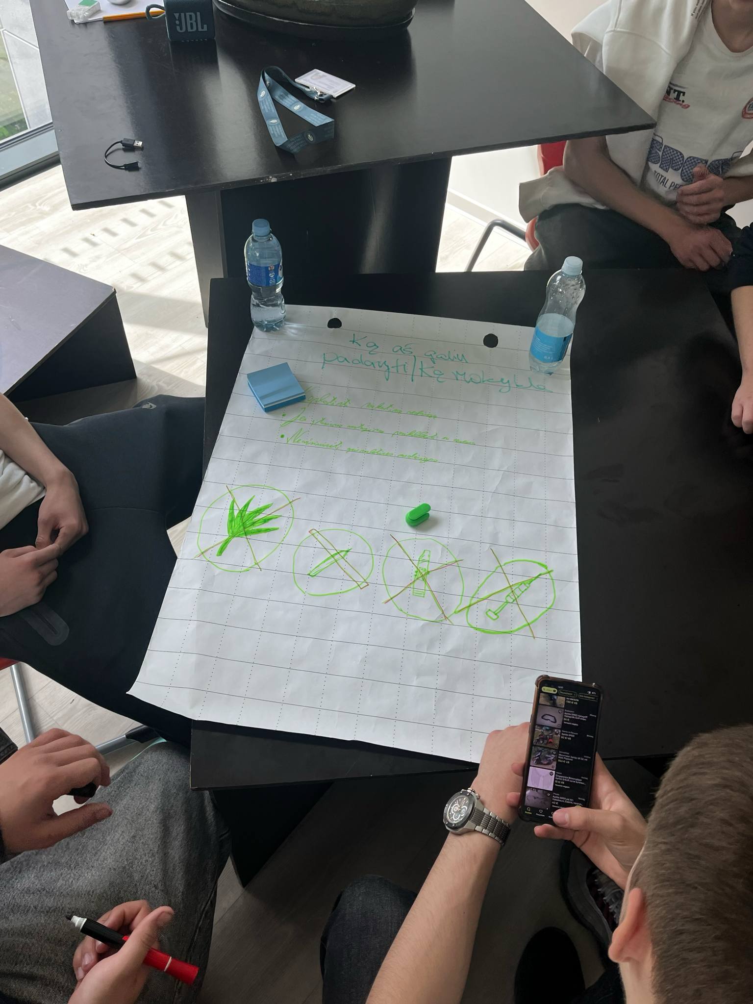 Balandžio–gegužės mėnesiais fokus grupės nariai kartu su gimnazijos psichologais, socialiniais pedagogais ir mokinių savivalda kūrė kūrybinį prevencinį produktą: vizualinę ir tekstinę kampaniją, skirtą bendraamžiams.