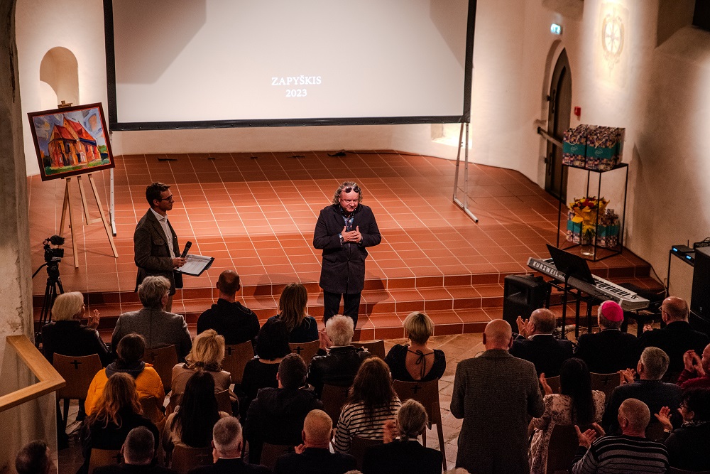 Sveikinimo žodžius gausiai susirinkusiai publikai sakė garbingi svečiai: Kauno rajono meras Valerijus Makūnas, Vilkaviškio Vyskupas Rimantas Norvila ir Zapyškio Šv. Jono Krikštytojo parapijos klebonas Juozas Fakėjavas. „Mes nežinome, kas projektavo ir statė šią bažnyčią, bet lenkiame prieš tuos žmones galvas. Taip pat norisi padėkoti institucijoms ir žmonėms, kurie padėjo bažnytėlei atgimti: Vilkaviškio vyskupui Rimantui Norvilai, architektui Gintarui Prikockiui, archeologams, restauratoriams, o šiandien – ir režisieriui Arvydui Barysui, kuris visą šį procesą įamžino filme. Dabar su pasididžiavimu galime pasakyti: mes visi kartu tai padarėme“, – kalbėjo Kauno rajono meras Valerijus Makūnas savo sveikinimo kalboje.