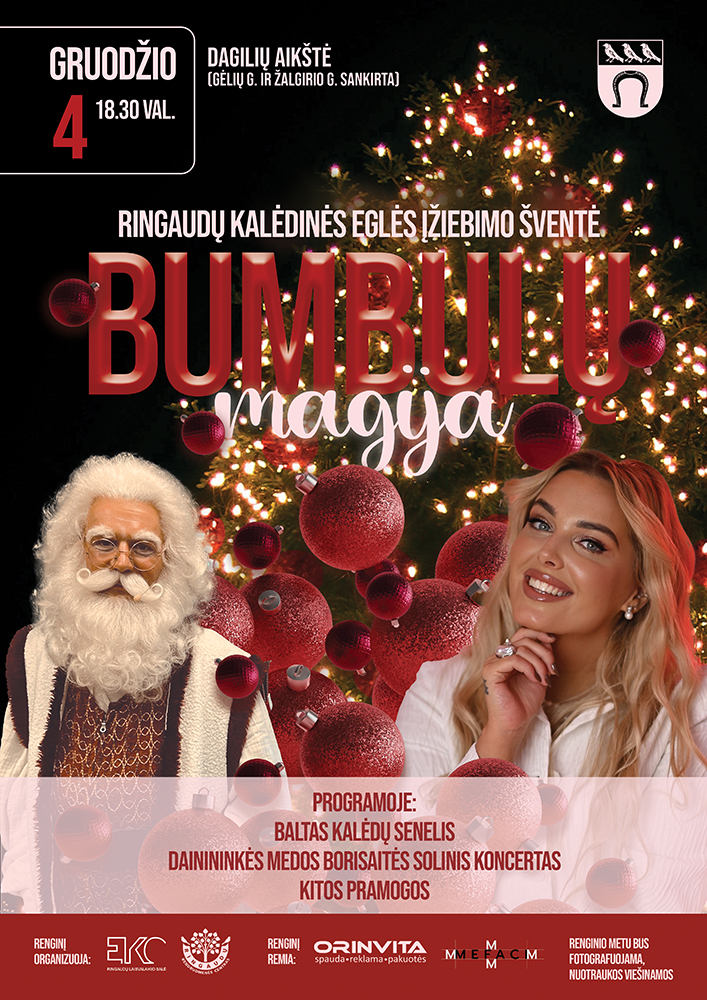 Gruodžio 4 d., ketvirtadienį, 18.30 val. kviečiame visus – mažus ir didelius – į žėrinčią Ringaudų kalėdinės eglės įžiebimo šventę „Bumbulų magija“!