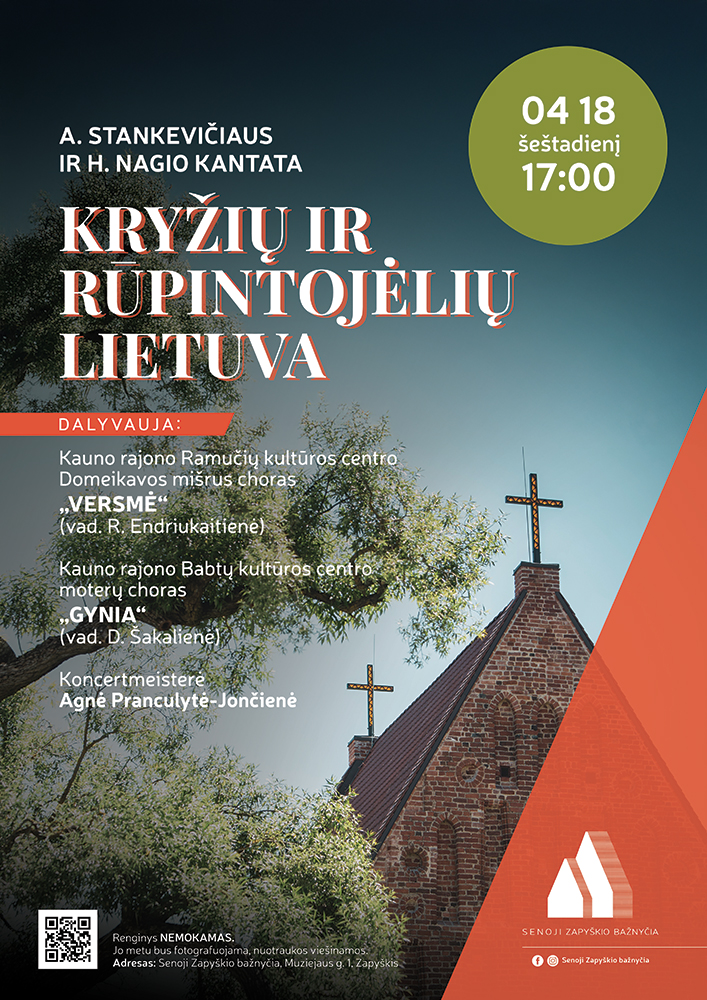 Šį kartą kantata „Kryžių ir rūpintojėlių Lietuva“ skambės senojoje Zapyškio bažnyčioje. Ją atliks gausus jungtinis choras: Kauno rajono Ramučių kultūros centro mišrus choras „Versmė“ (vad. R. Endriukaitienė) ir Kauno rajono Babtų kultūros centro moterų choras „Gynia“ (vad. D. Šakalienė), akompanuos koncertmeisterė Agnė Pranculytė-Jončienė.