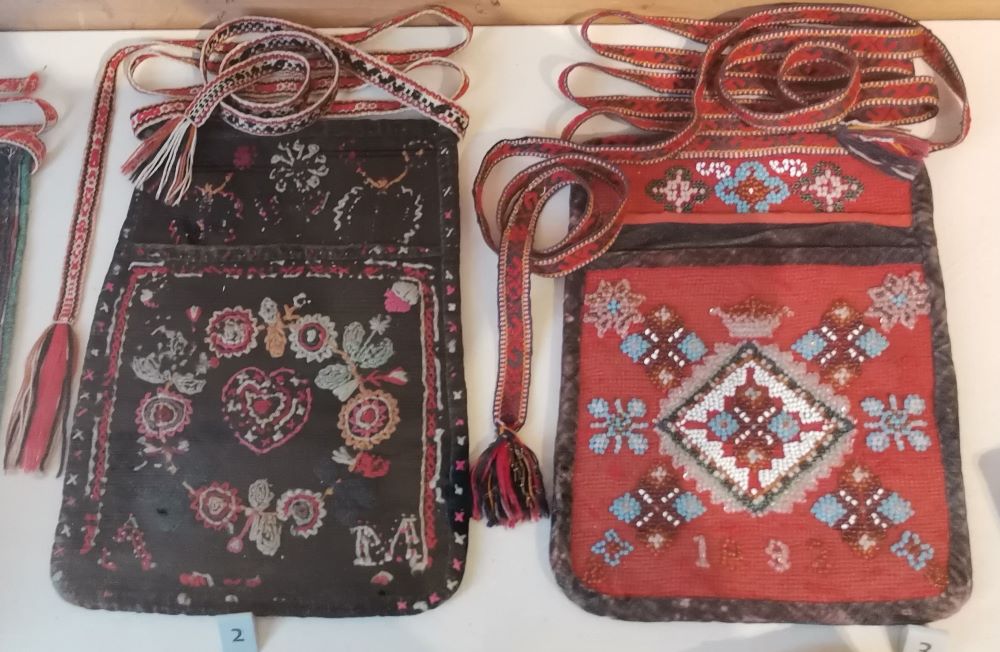 Grožėjomės delmonais, lietuvininkių moterų puošniomis, siuvinėtomis kišenėmis, kurios austine juostele buvo rišamos prie juosmens.