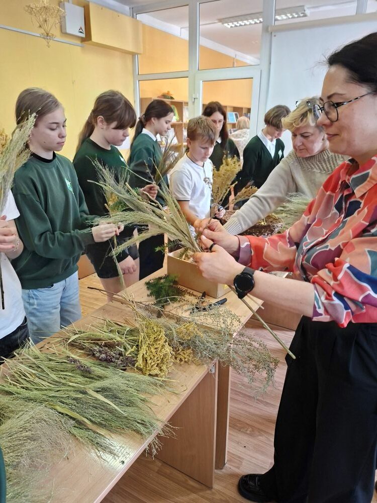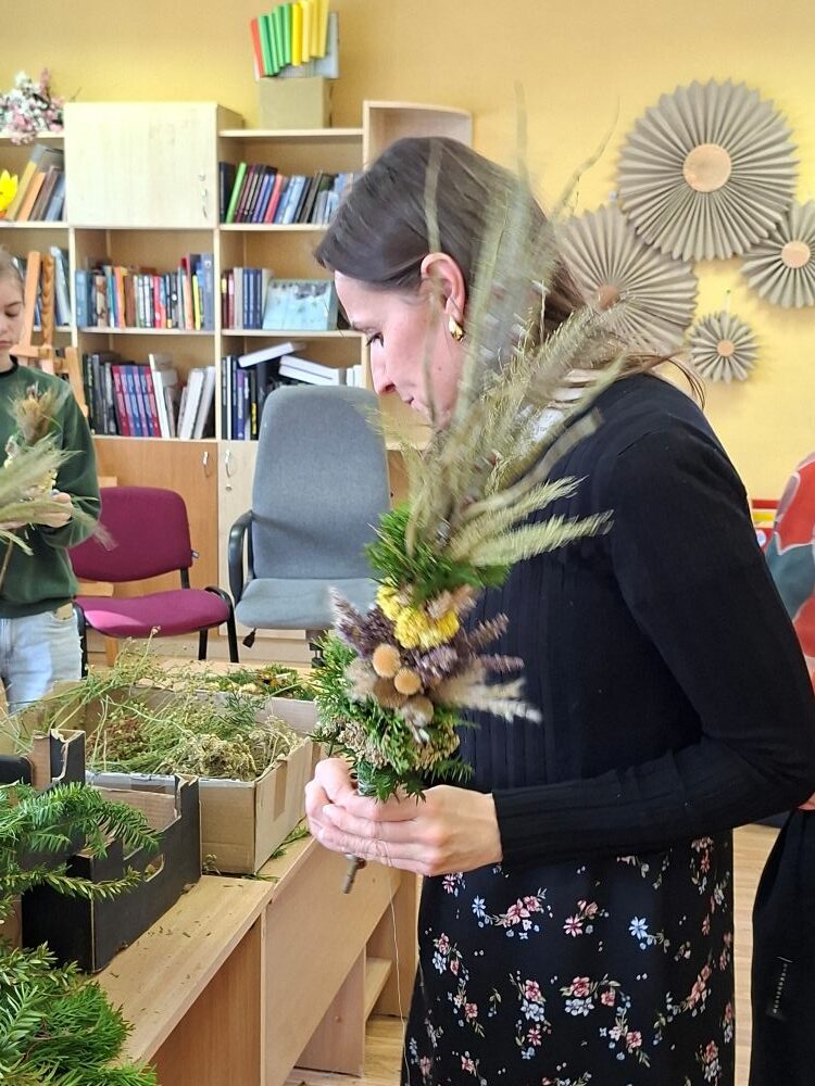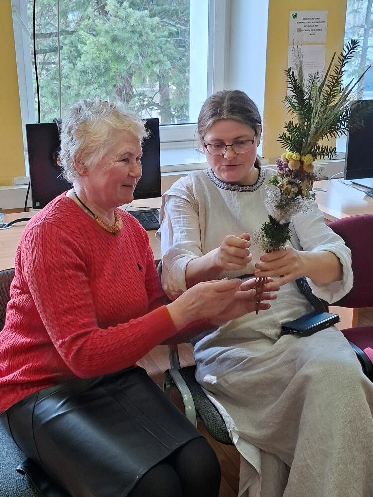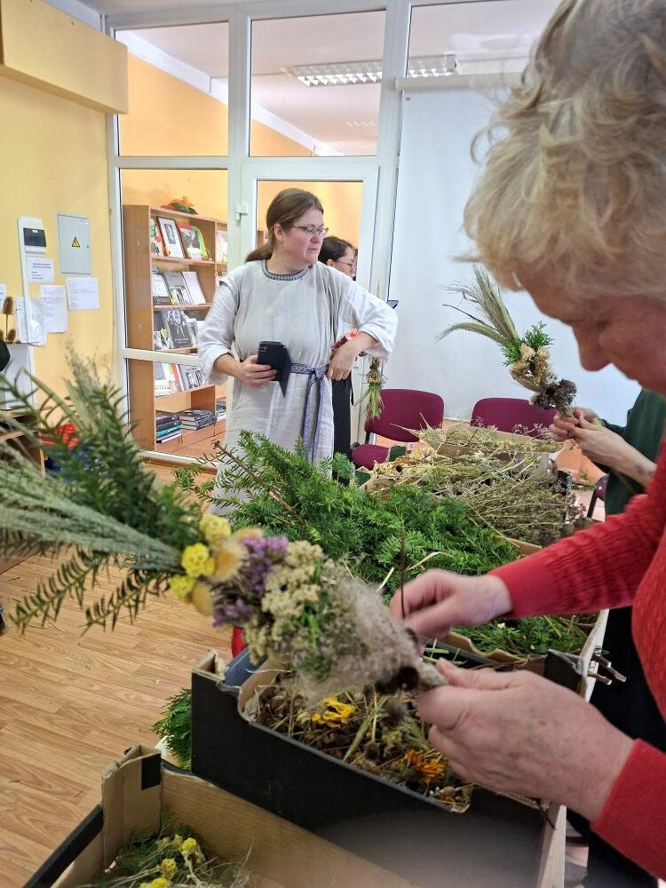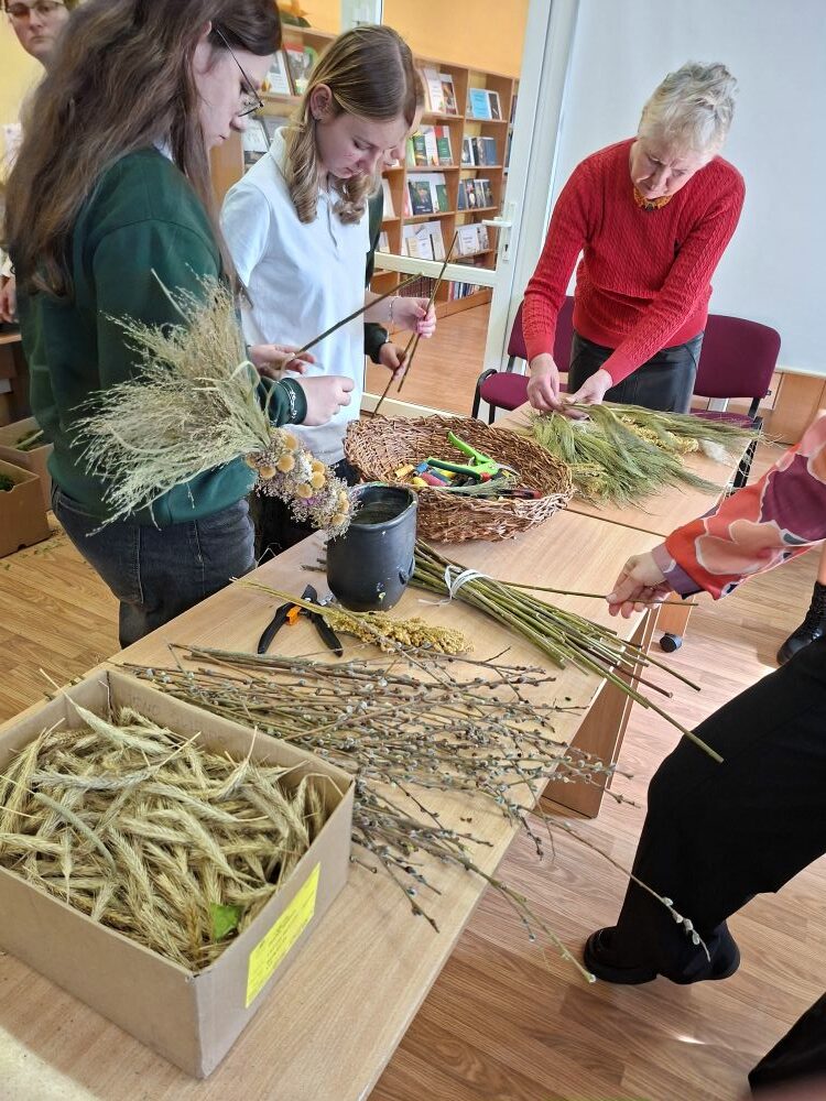 Dėkojame tautodailininkei ir visiems dalyviams, kurie nuoširdžiai plušėjo ir išsinešė į namus po savo sukurtą verbą!