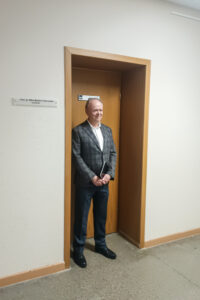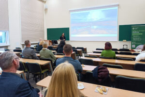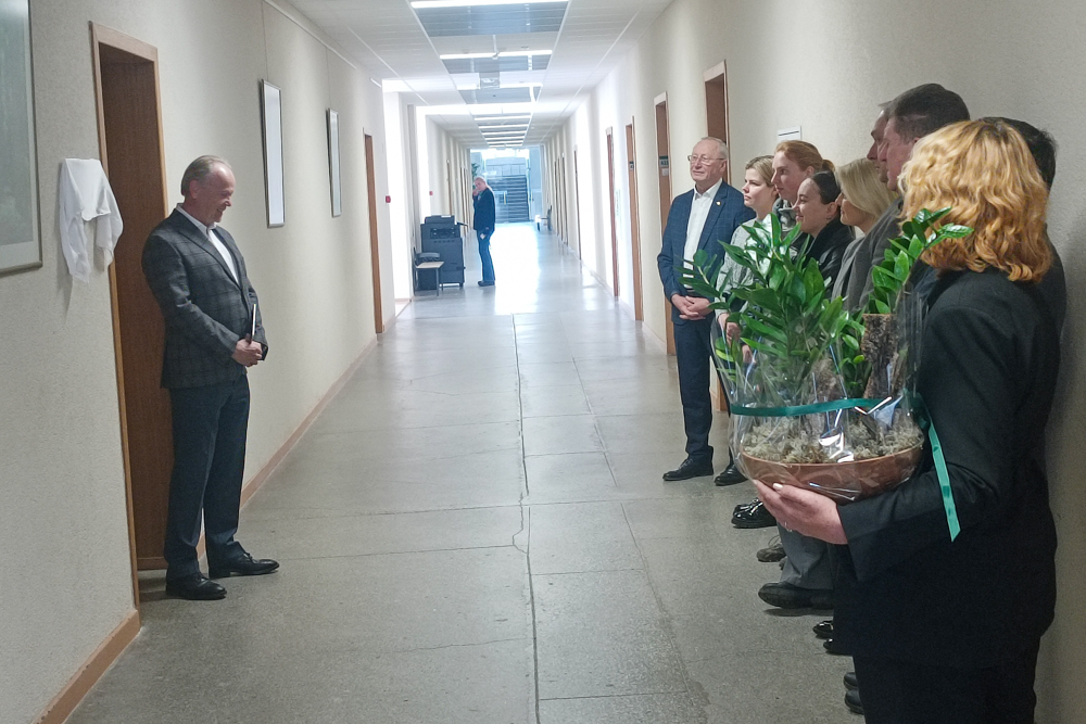 Iškart po ceremonijos keliavome į universitetą, kuriame Miškų ir ekologijos fakulteto 10-mečio proga buvo simboliškai pažymėtas naujos auditorijos atidarymas. Auditorijos pavadinimas skirtas prof. dr. Vidos Marijos Rutkovienės atminimui ir prasmingiems darbams universitetui atminti.
