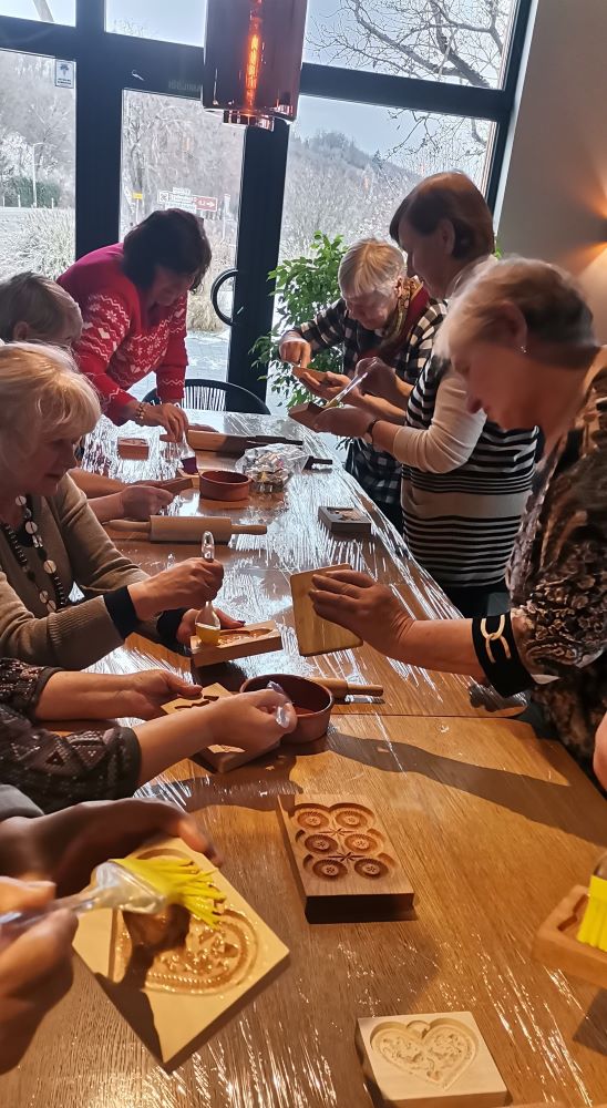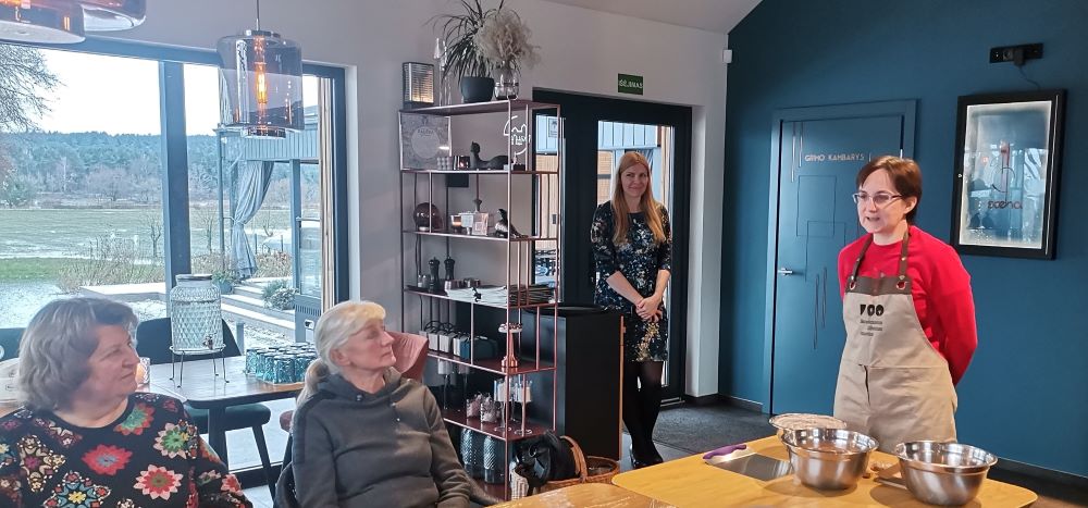 SCENOS restorane Zapyškio moterys kartu su istorike, rašytoja Anželika Laužikiene kalbėjosi apie meduolių kelią į Lietuvą, kepė net kelių rūšių meduolius.