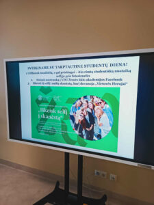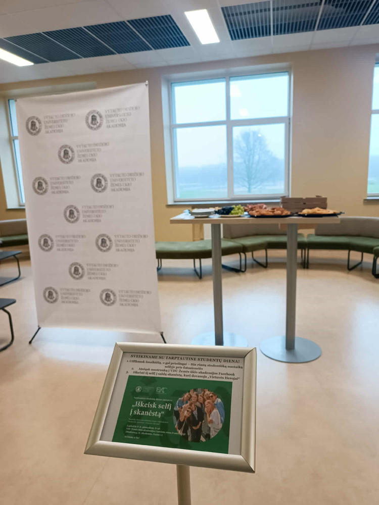 Lapkričio 17 d. 11 val. VDU ŽŪA Centrinių rūmų II aukšto fojė paminėta tarptautinės studentų dienos iniciatyva „Iškeisk selfį į skanėstą“.