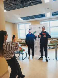 Studentai fiksavo studentišką nuotaiką – tiek šmaikščią, tiek rimtą – prie fotosienelės, o atsiuntę nuotraukas ragavo skanius Virtuvės Herojų užkandžius.