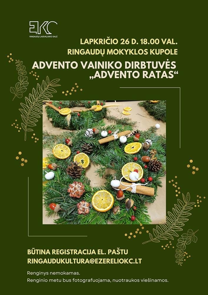 Pasitinkant susikaupimo ir ramybės metą kviečiame jus į Advento vainiko dirbtuves „Advento ratas“! Advento vainikas – vienas ryškiausių artėjančių švenčių laukimo simbolių. Apskrita jo forma primena amžinybę, vienybę ir nemirštančią šviesą. Gamtos gėrybėmis puoštas, keturių žvakių šviesa nušviestas vainikas ne tik papuoš jūsų namus, bet ir taps jaukiu vilties ženklu visam advento laikui.