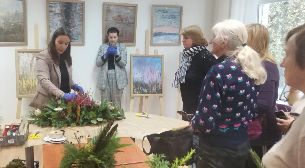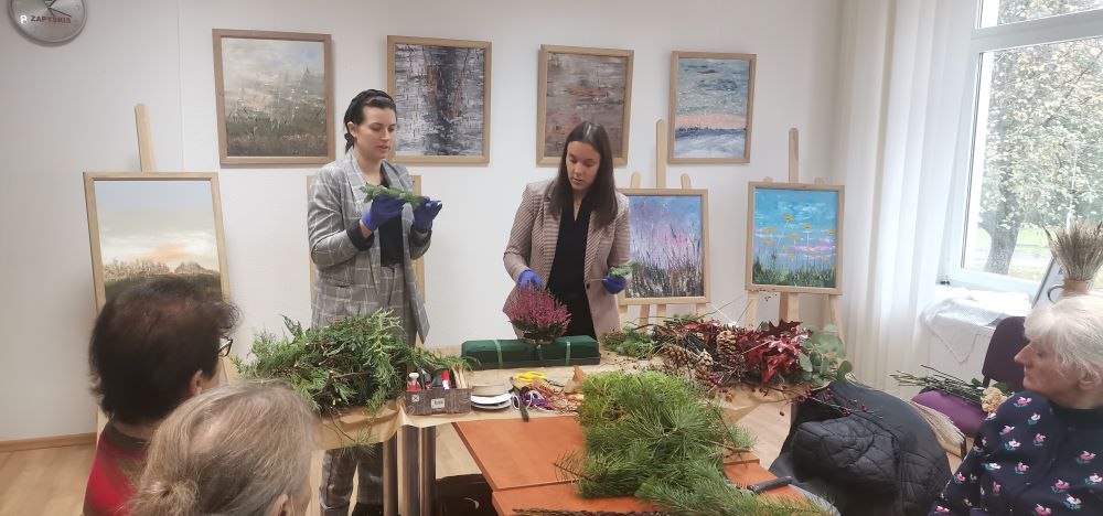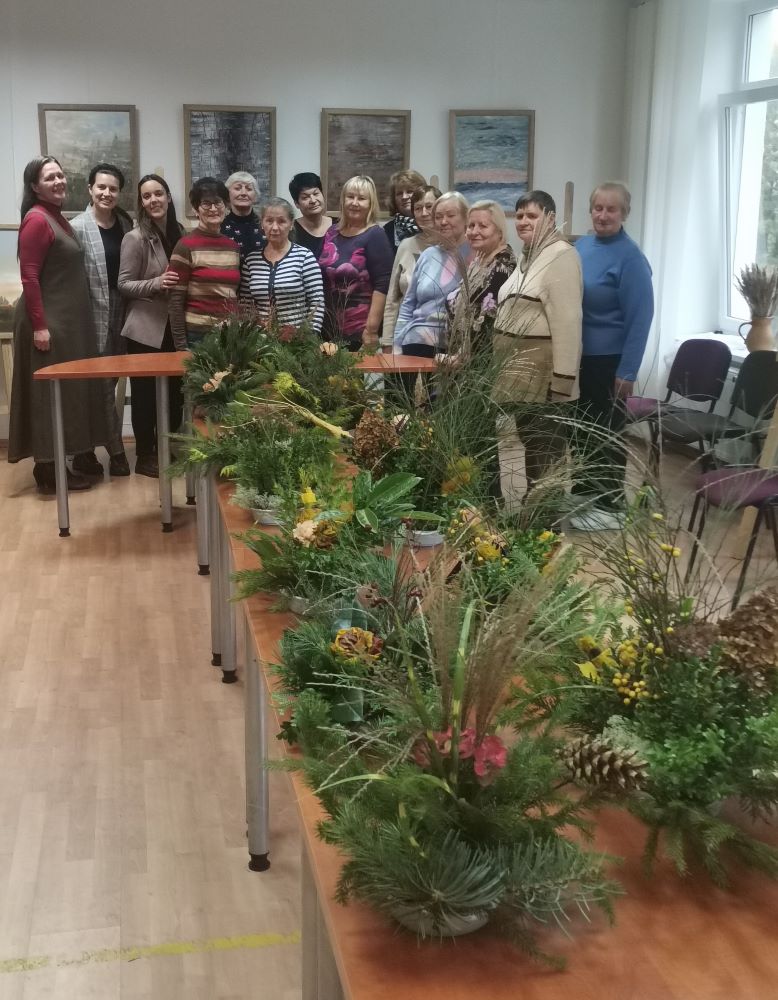 Spalio 25 d. Zapyškio seniūnijos salėje Kauno Karaliaus Mindaugo profesinio mokymo centro profesijos mokytojos Živilė Večerskienė ir Jolita Jaciunskienė dalinosi savo žiniomis, kaip ir iš ko galima sukurti puikias floristines kompozicijas, kurios gali papuošti mūsų gyvenamąją aplinką.