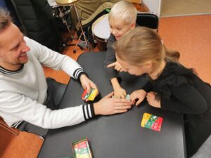 Nuoširdžiai džiaugiamės, kad kartu su jumis galėjome praleisti šį šiltą vakarą, kupiną geros nuotaikos, smagių iššūkių ir nuoširdaus bendravimo. Buvo nepaprastai smagu stebėti, kaip išradingai ir entuziastingai išbandėte žaidimus „DuetO!“ ir „Takas. Miškas. Gilė. Kiaulė. Bulvė“ – jūsų juokas ir azartas sukūrė tikrą bendrystės atmosferą!