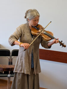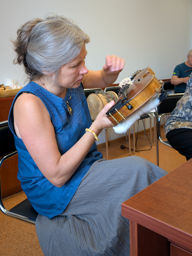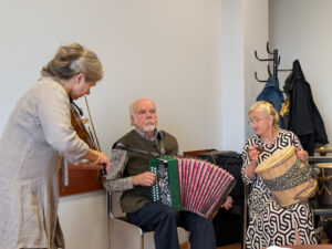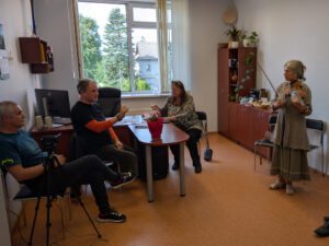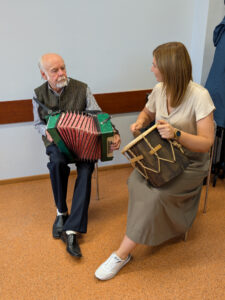 Susitikimo metu Vida Palubinskienė kalbėjosi su Liuda apie jos prosenelio Simono Staniulio kankles bei šeimos tradiciją – tai jautrus ir prasmingas pokalbis, primenantis, kaip svarbu saugoti ir tęsti savo šaknis.