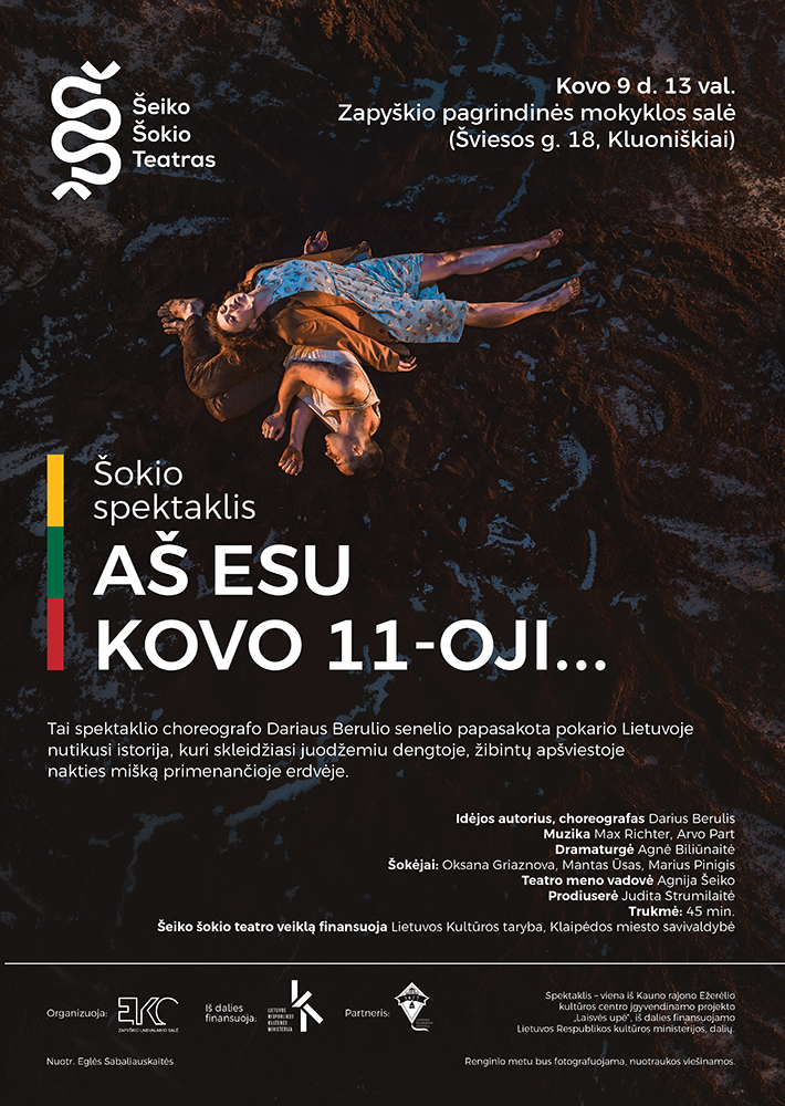 Minėdami šią datą kovo 9 d. 13 val. Zapyškio pagrindinės mokyklos salėje (Šviesos g. 18, Kluoniškiai) išvysime Šeiko šokio teatro spektaklį „Aš esu Kovo 11-oji…“