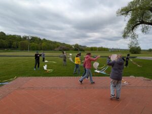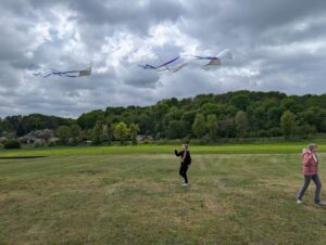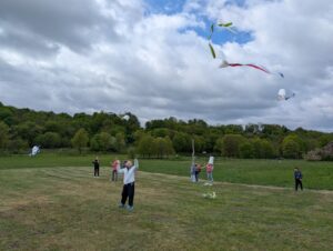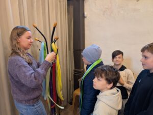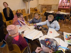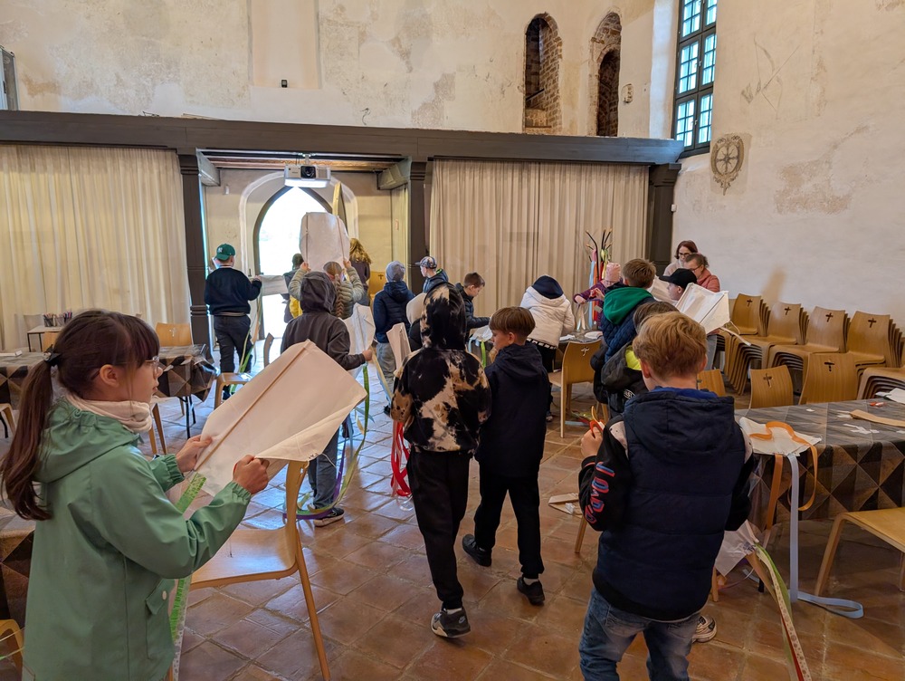 Kartu su edukatore Monika Mickevičiūte vaikai uoliai kūrė savo aitvarus – kiekvienas jų su meile ir kruopštumu. Vos tik aitvarai buvo baigti, jie pakilo į dangų – lydimi šypsenų, juoko ir džiaugsmo! Bažnyčios prieigose vaikai džiaugsmingai skraidino savo rankomis sukurtus vėjo draugus, kurie drąsiai kilo aukštyn – stiprūs ir kupini svajonių.