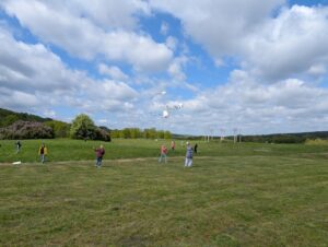 Po kūrybinio skrydžio aitvariukai iškeliavo su vaikais atgal į mokyklą, kur bus toliau puošiami Kauno rajono simbolika. Tikime, kad Tarptautinio aitvarų festivalio „Tarp žemės ir dangaus“ metu dangų papuoš gausybė išradingai dekoruotų aitvarų!