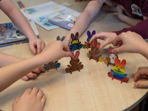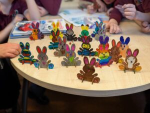 Skaitymus vainikavo kūrybinės dirbtuvėlės, kuriose kiekvienas vaikas su meile ir kruopštumu dekoravo savo velykinį zuikutį. Kiekvienas darbelis – savitas, spalvingas ir pilnas vaikiško džiaugsmo.