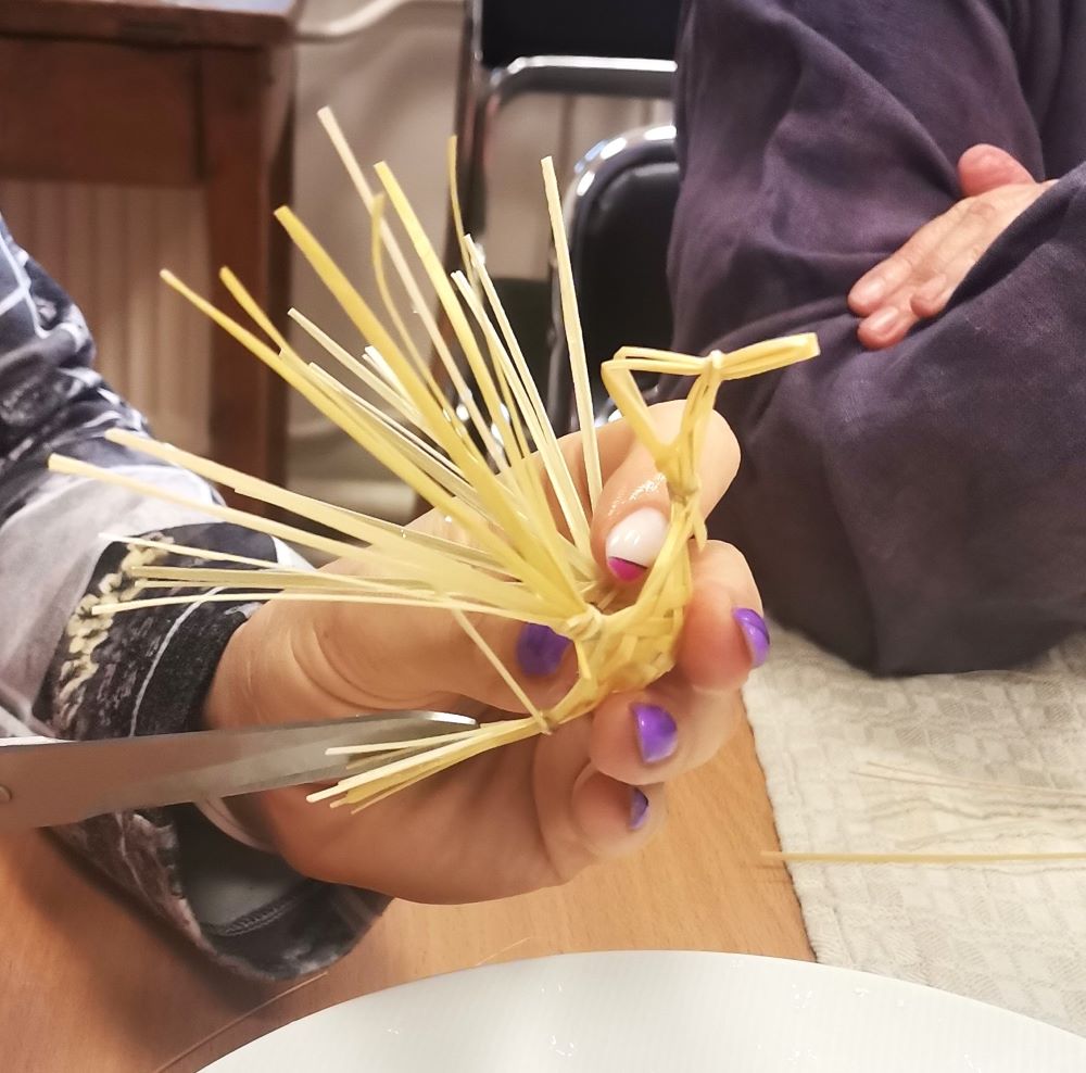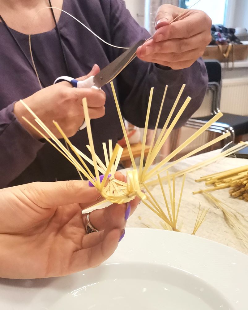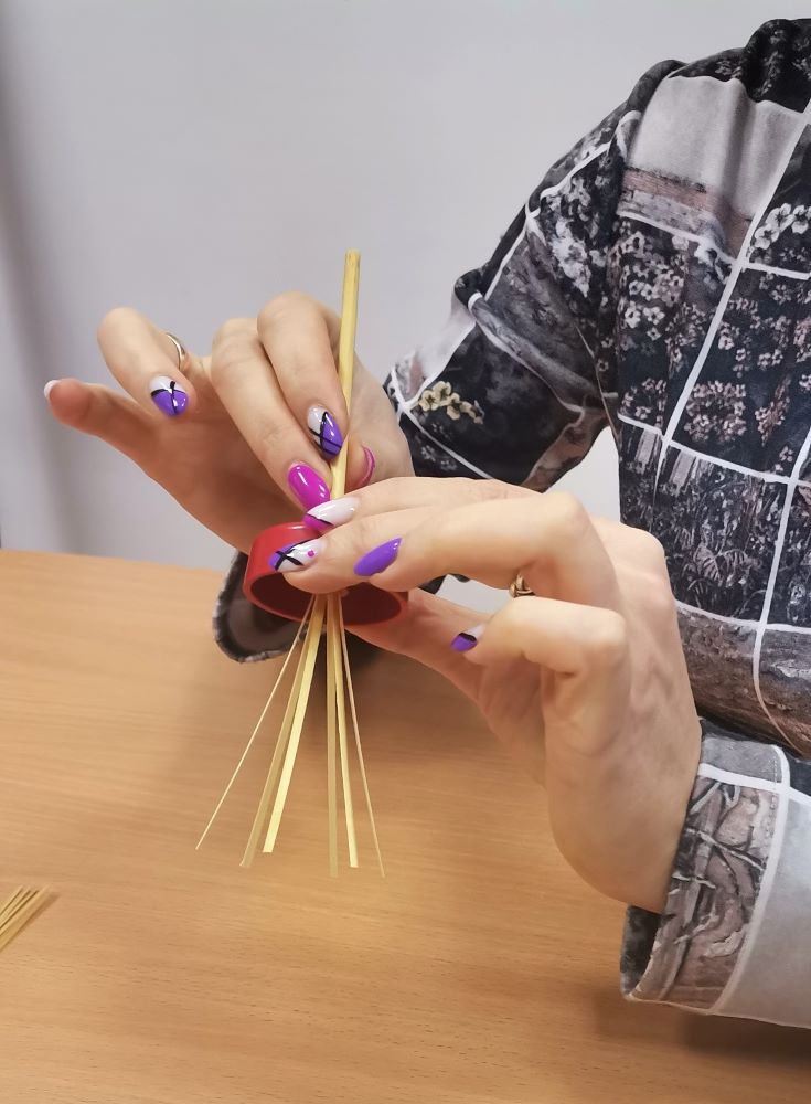 Pasirodo, ne taip paprasta surišti šiaudinį paukštelį – šiaudeliai taip ir nori išslysti iš rankų…