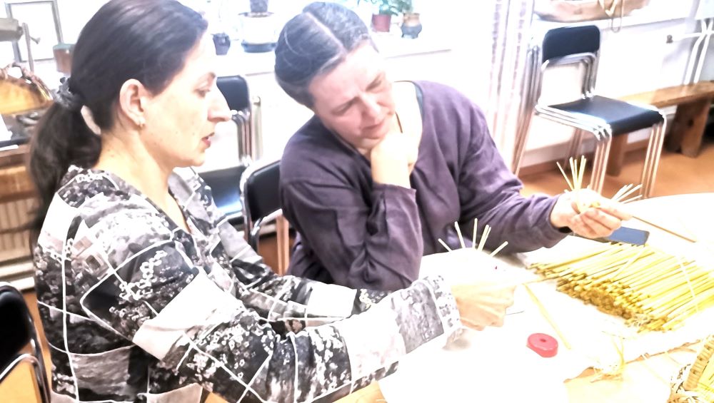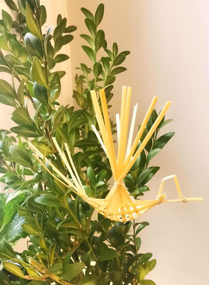 Vakar kartu su etnografe, šiaudinių sodų rišėja, tautodailininke Jūrate Bytaute, mokėmės rišti paukštelius – pavasario pranašus – kurie jau netrukus nutūps ant Velykų medžio.