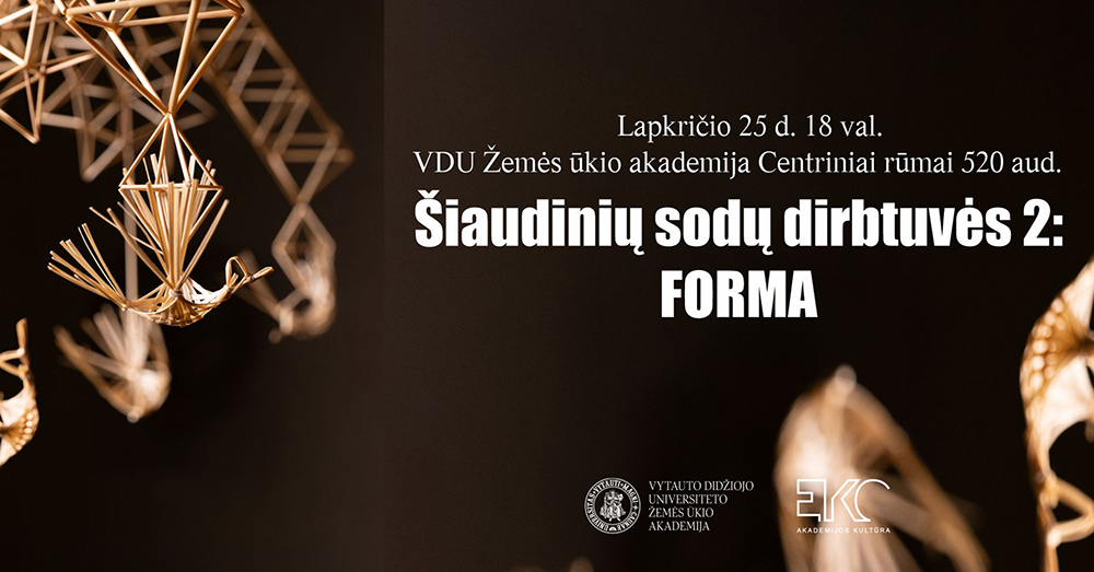 Lapkričio 25 d. 18.00 val. kviečiame į antrąjį šiaudinių sodų kūrimo dirbtuvių ciklo susitikimą, kurį ves tautodailininkė Violeta Dabrilienė. Susitikimas vyks VDU ŽŪA Centriniai rūmai, 520 aud.