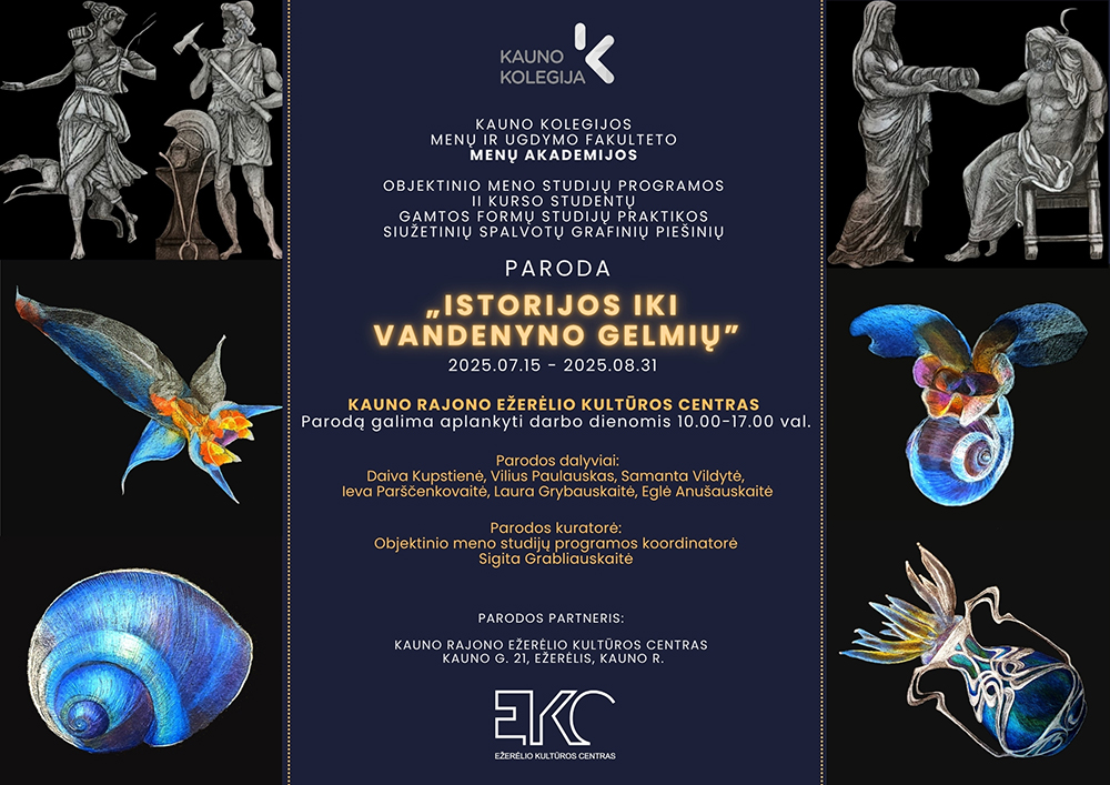 Nuo liepos 15 d. iki rugpjūčio 31 d. kviečiame apžiūrėti Ežerėlio kultūros centro salėje eksponuojamą Kauno kolegijos Menų ir ugdymo fakulteto Menų akademijos studentų spalvotų grafinių piešinių parodą „Istorijos iki vandenyno gelmių“.