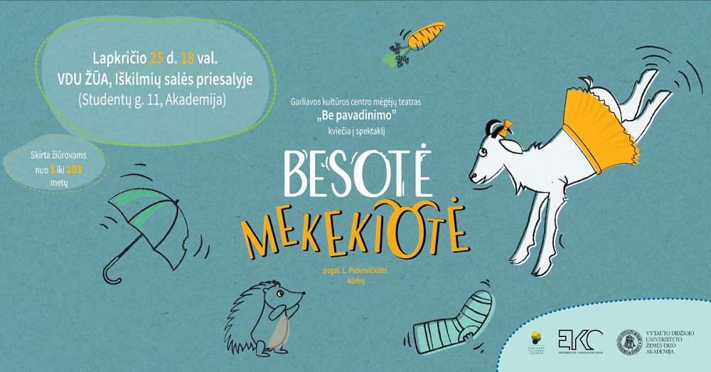 Lapkričio 25 dieną 18 val. Studentų g. 11, VDU ŽUA Iškilmių salės priesalyje, vyks nepakartojama spektaklio premjera „Besotė Mekekiotė“. Dalyvauti kviečiame ir mažus, ir didelius!