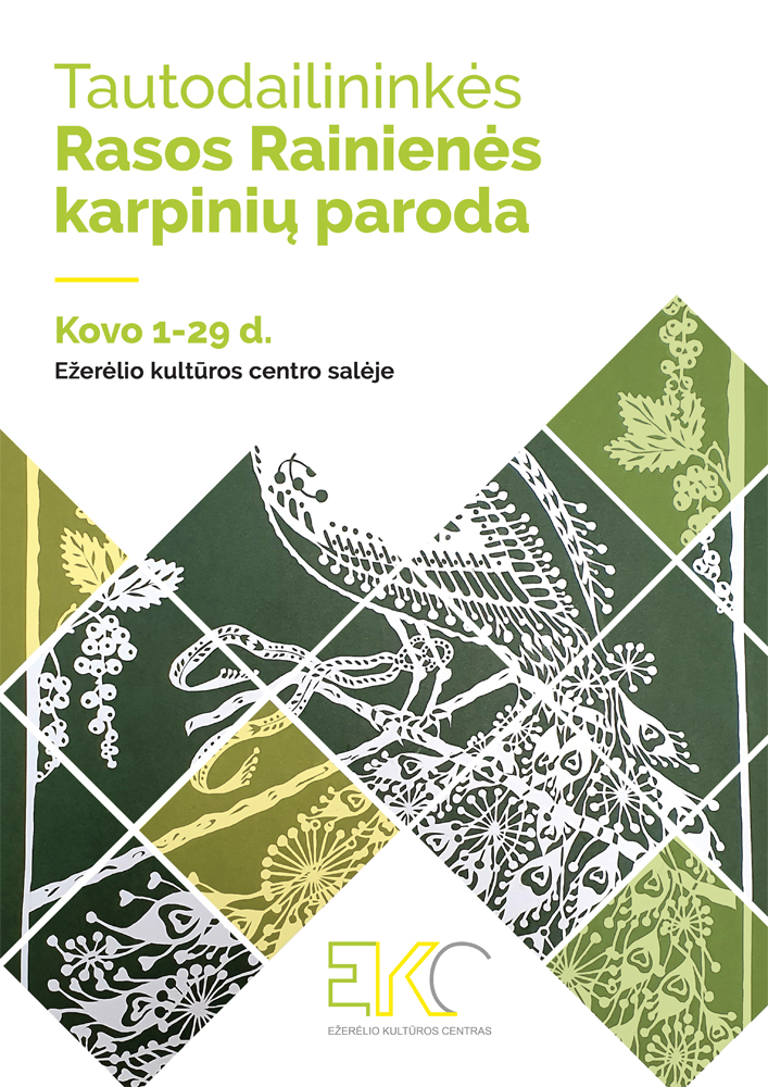 Kviečiame aplankyti tautodailininkės Rasos Rainienės karpinių parodą, kuri bus eksponuojama Ežerėlio kultūros centro salėje iki kovo 29 d.