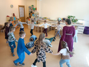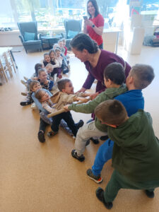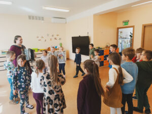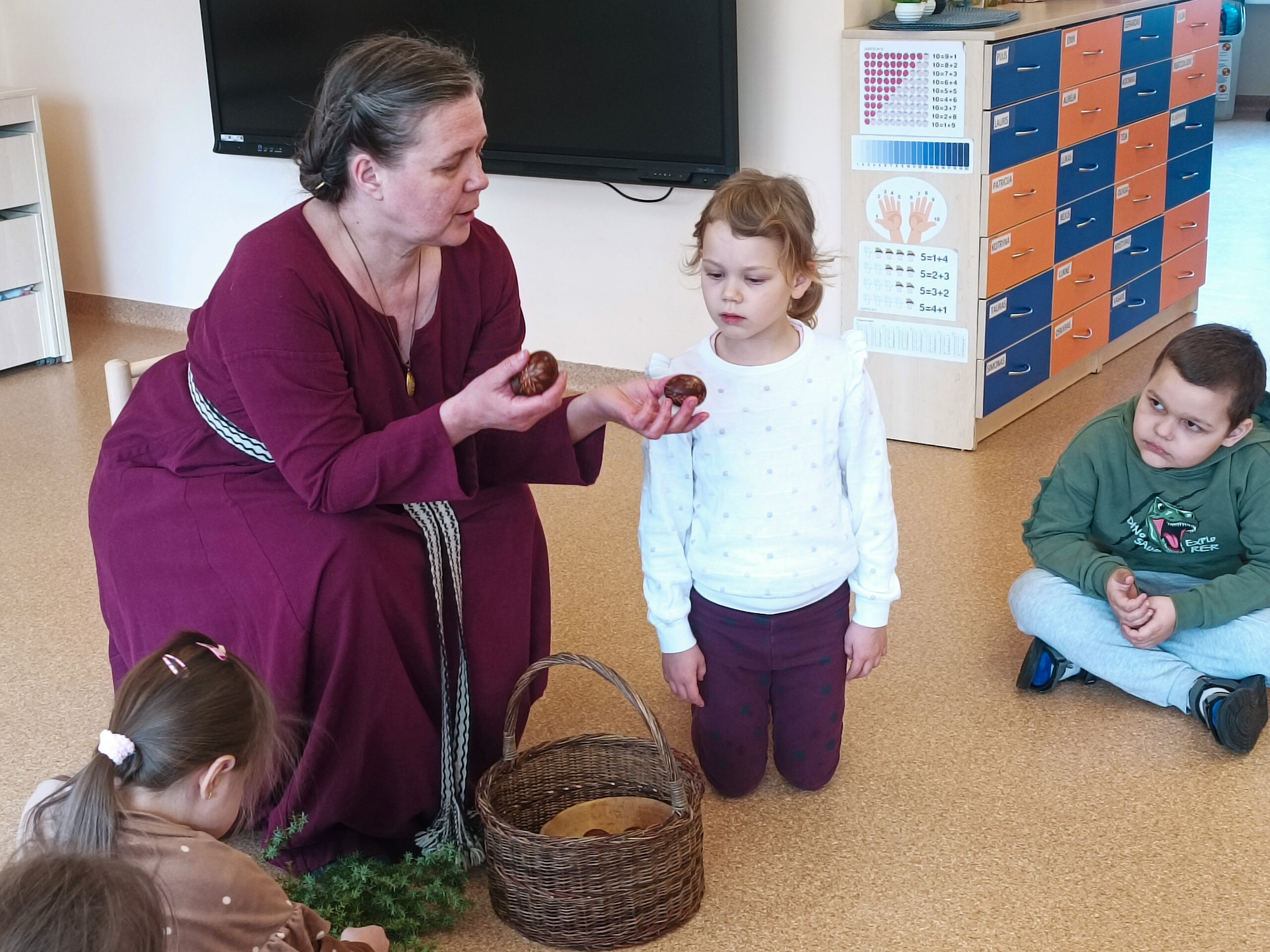 Balandžio 8 d. Noreikiškių lopšelyje-darželyje „Ąžuolėlis“ skambėjo vaikų juokas ir džiugesys – čia vyko smagi ir prasminga Vaikų Velykėlių šventė! Kartu su etnografe Jūrate Bytaute mažieji leidosi į lietuvių liaudies tradicijų pasaulį: žaidė senovinius žaidimus, rideno margučius bei džiaugėsi aktyviomis veiklomis. Susitikimas buvo kupinas šypsenų, bendrystės ir pavasariškos nuotaikos – tikras priminimas, kokios gražios ir gyvos yra mūsų tradicijos.