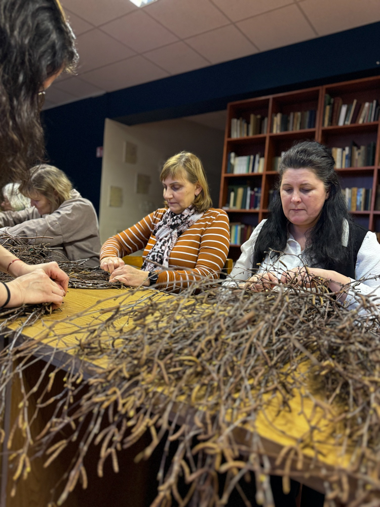 Kovo 26-ąją turėjome labai jaukų ir kūrybišką pasibuvimą. Prisilietėme prie gamtos su „Basomis miške“, kurio įkūrėja Aušra mums vedė velykinio lizdelio pynimo edukaciją/dirbtuves.
