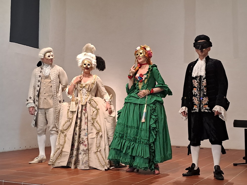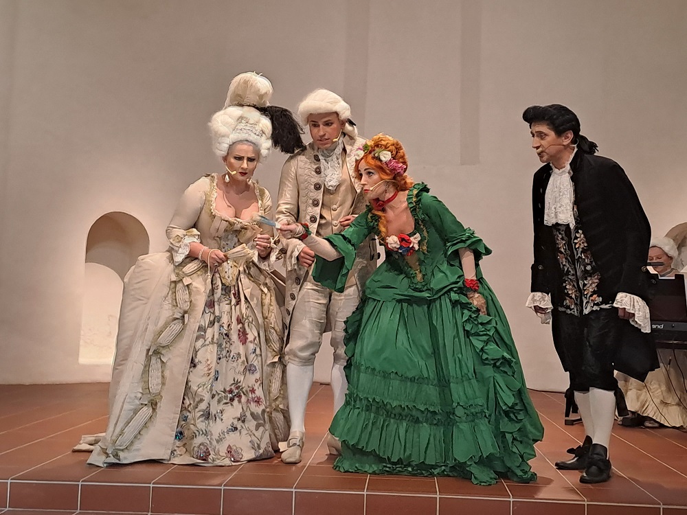 Gausiai susirinkę žiūrovai buvo pakarėti smagaus koncerto, kvepiančio prancūziškais kvepalais ir prabanga. Jie išvydo manieringo baroko vaizdelį su meilės peripetijomis ir amžinu tėvų ir vaikų nesusikalbėjimu. Visus žavėjo be galo profesionalūs ir įtaigūs solistai-aktoriai: Kristina Siurbytė, Akvilė Garbenčiūtė – Bučienė, Rokas Laureckis ir Raimondas Baranauskas.