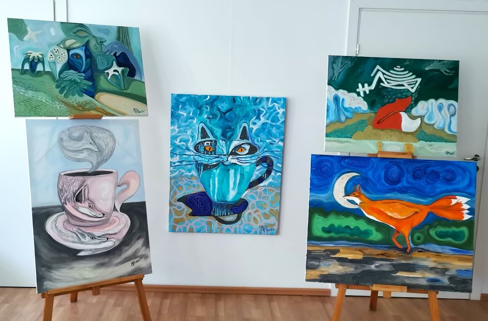 Taip vakar apie savo kūrybą kalbėjo menininkė, dėstytoja, tyrėja Indrė Gražulevičiūtė-Vileniškė, pristatydama tapybos darbų parodą Zapyškyje. „Labiausiai mėgstu piešti gyvūnus – augau kaime ir netgi kažkada svajojau stoti į Veterinarijos akademiją. Nuo mažens, kiek pamenu, visą laiką piešiau. Mano gyvūnai galbūt šiek tiek mistiški, gyvenantys ne tik miškuose, bet lengvai atsiduriantys kavos puodelyje, virstantys namu ar skalbimo mašina, ryškūs, spalvingi.“