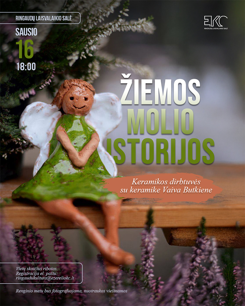 Sausio 16 d. 18 val. kviečiame į jaukų ir kūrybišką molio magijos vakarą Ringaudų laisvalaikio salėje – keramikos dirbtuves su keramike Vaiva Butkiene.