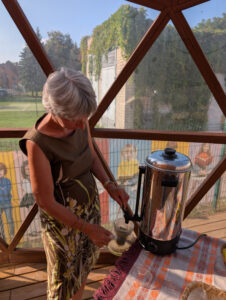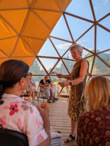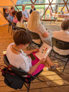Liepos 22-sios vakarą Ringaudų pradinės mokyklos kupole vyko jaukus, žolelių arbata kvepiantis susitikimas su žolininke Rūta Borutiene.